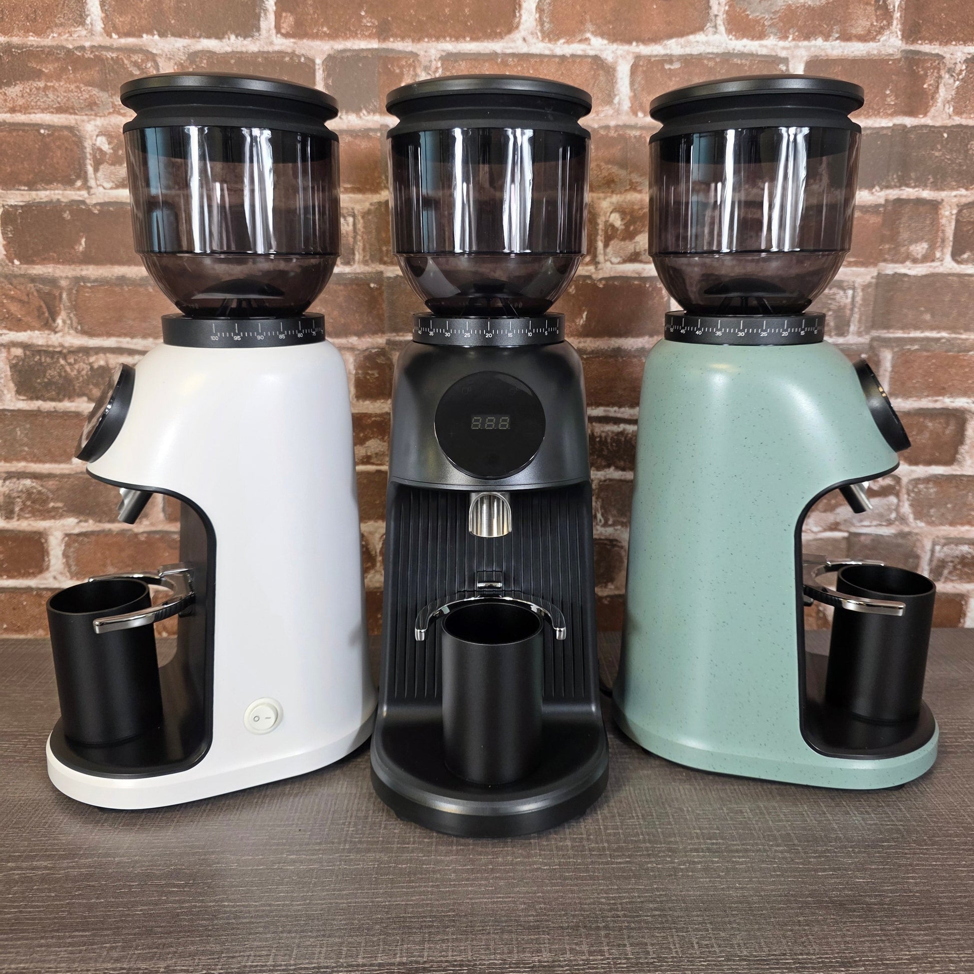 The GF64 grinder from the DF grinders team was designed to be a high-performing value grinder. It incorporates a lot of the features from the popular DF54 and DF64 such as custom made 64mm burrs, plasma generator, anti-popcorn and near zero retention. It even adds time based dosing with 2 programmable doses and metal chute and portafilter fork. The plastic body and small motor is how the DF team was able to offer such a great grinder at this price point while not sacrificing the grind quality.