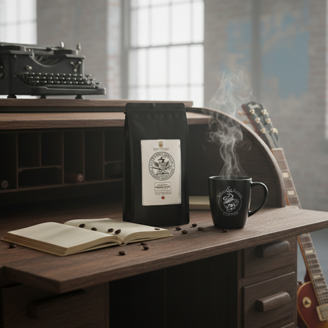 Together, they create a smooth, medium-bodied coffee with layered complexity — a perfect companion for late-night writing sessions, early-morning rehearsals, or those in-between moments when the muse strikes.