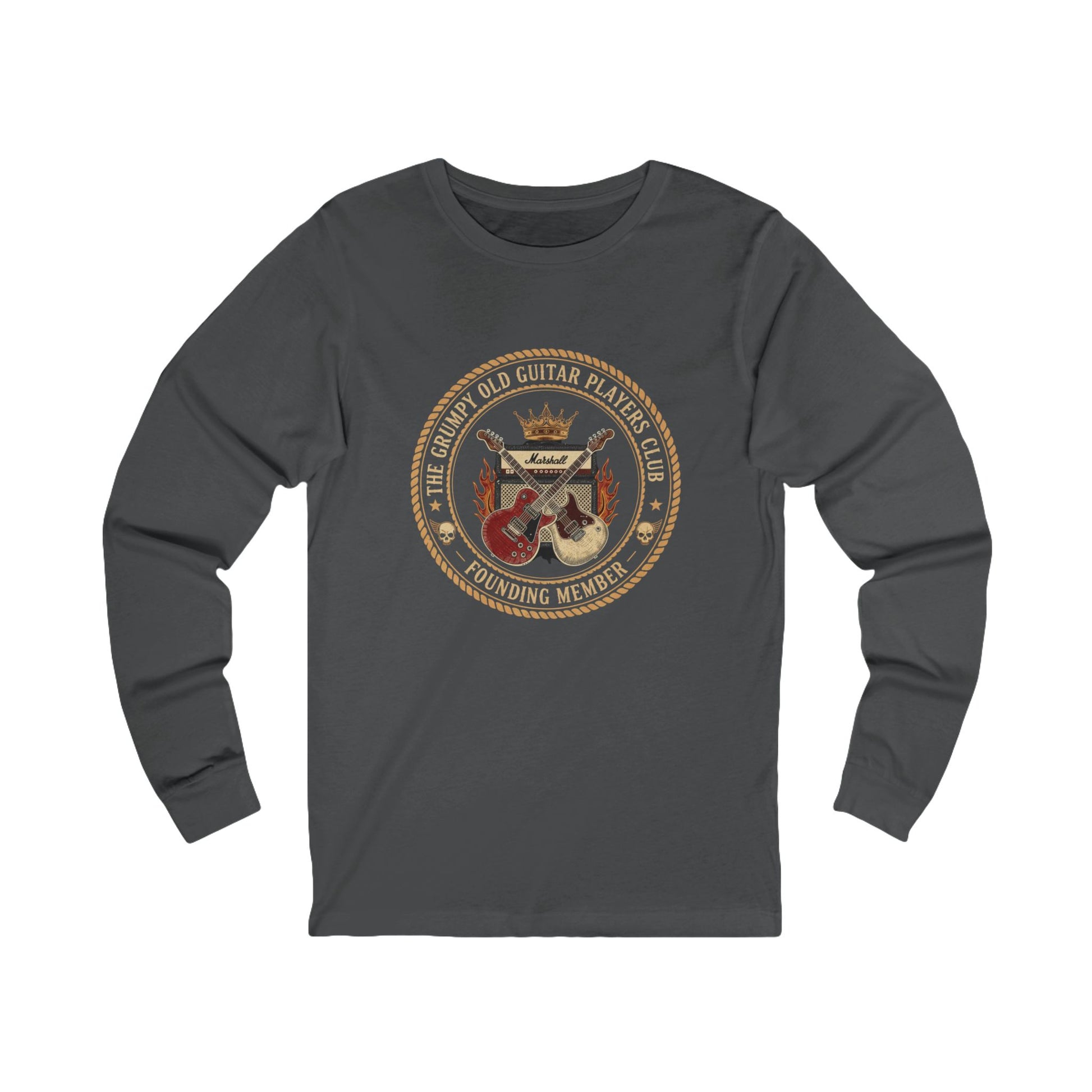 The Writers & Rockers Coffee “Grumpy Old Guitar Players Club” Long Sleeve T-Shirt is for those who’ve paid their dues in smoky bars, tuned up more guitars than they can count, and have zero patience left for bad tone or auto-tune.